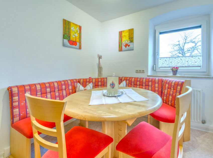 Der separate Essraum mit gemütlicher Eckbank bietet Platz für gemeinsame Mahlzeiten und gesellige Stunden.
